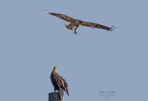 ![]() 67 Osprey harassing a Bald Eagle (187 yards) |
