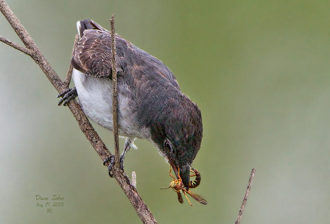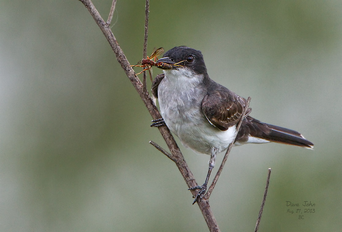 ![]() 3 Eastern Kingbird with a newly-caught wasp |