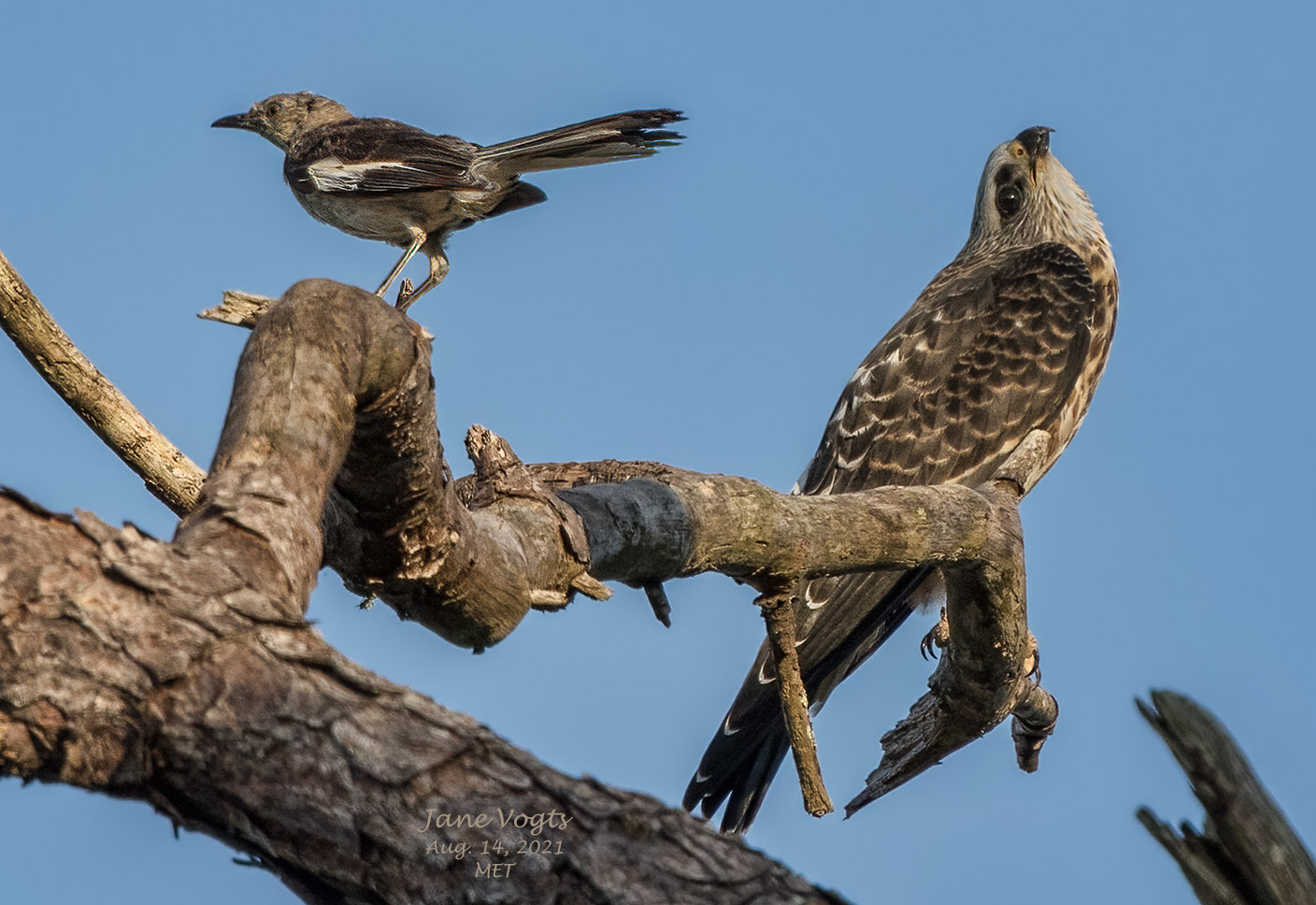 ![]() 15 Juvenile Mississippi Kite being harassed by a Mockingbird |