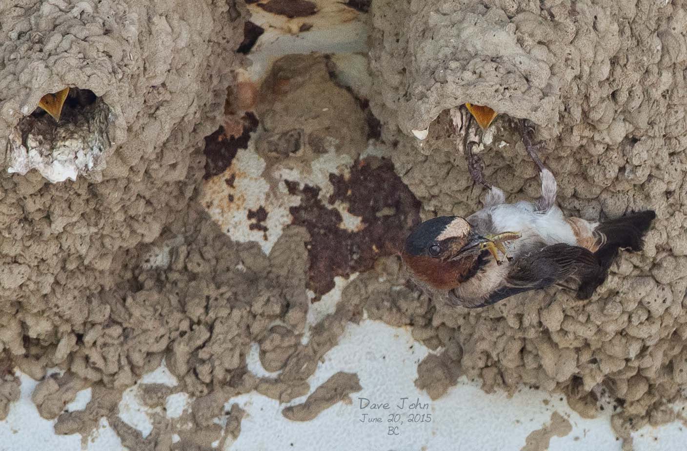 ![]() 11 Cliff Swallow with a grasshopper for the chick |