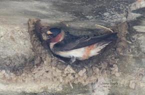 ![]() 43 Cliff Swallow with a bill-full of mud |