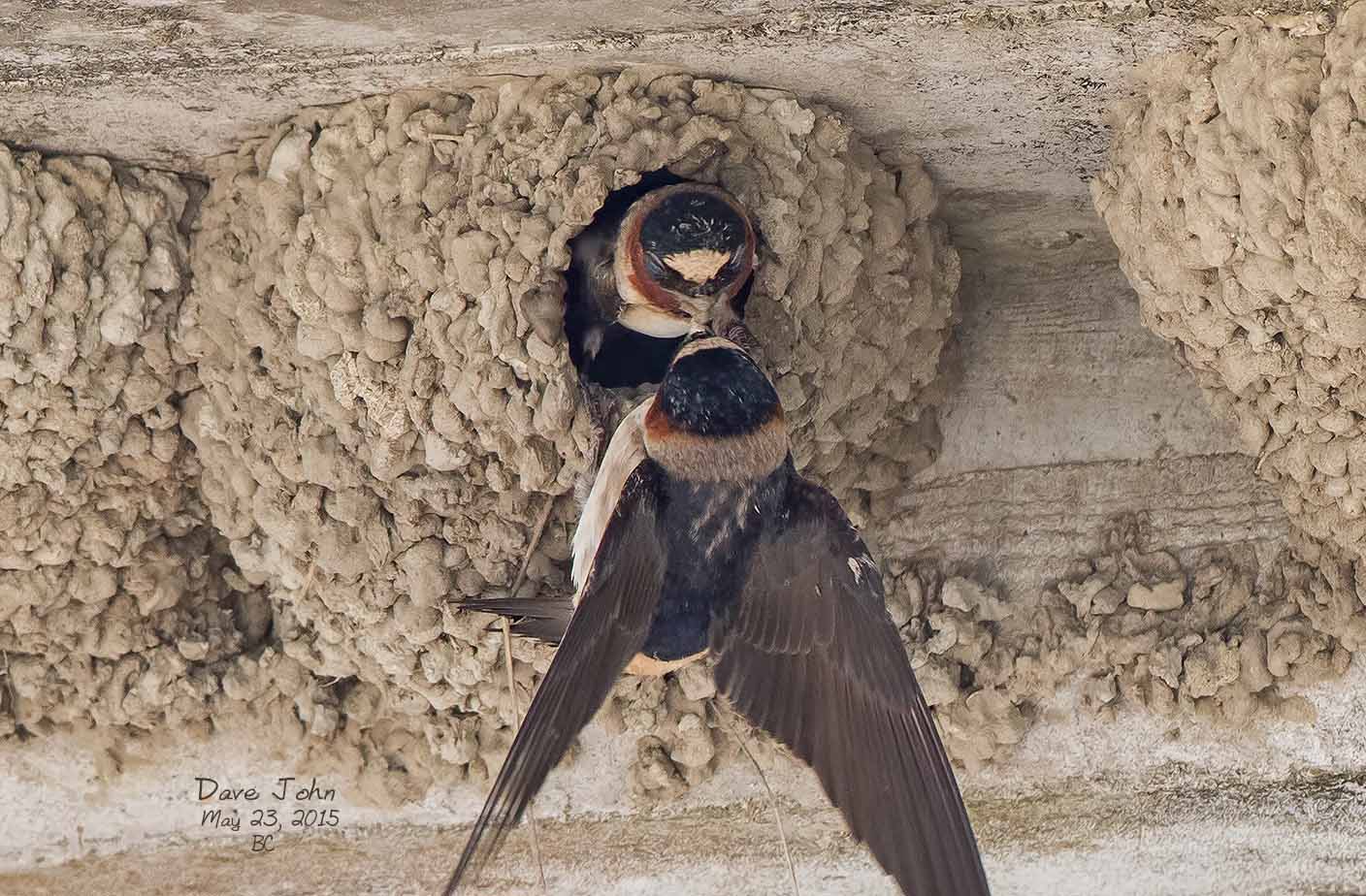 ![]() 7 Cliff Swallow building a mud nest |