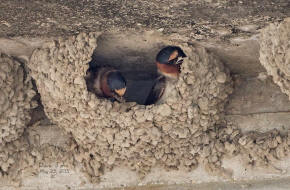 ![]() 42 Cliff Swallows collecting mud for nest building |
