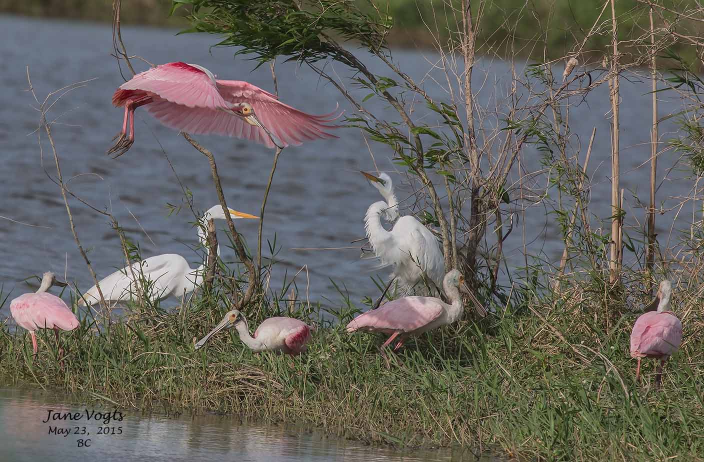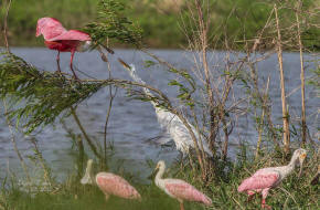 56Roseate Spoonbills and Great Egrets |