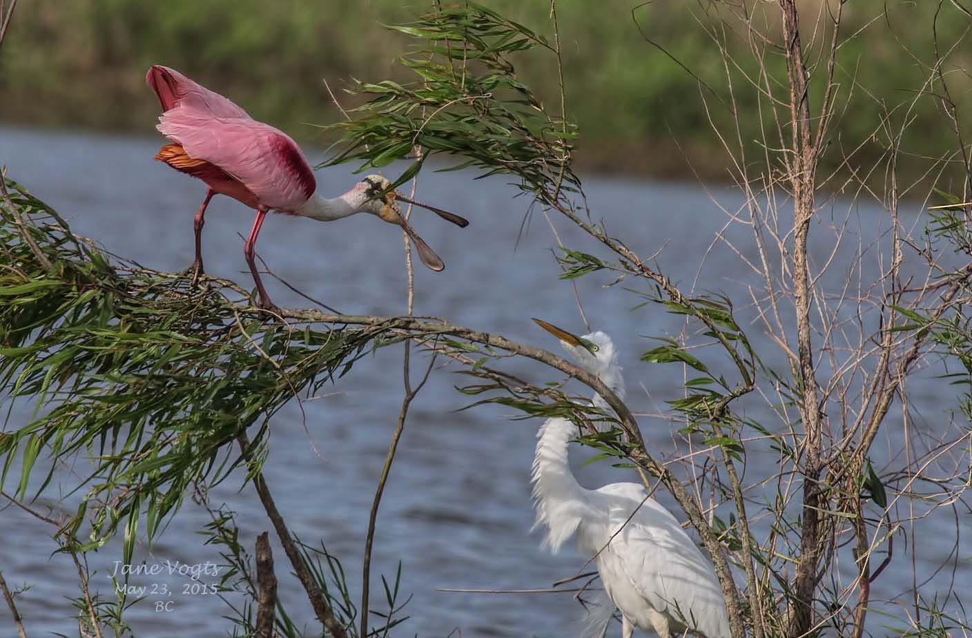 ![]() 52 Roseate Spoonbill squabbling with Great Egret |