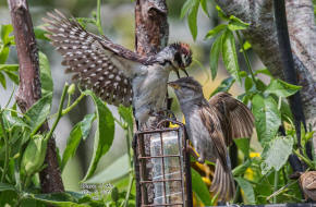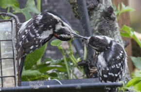 ![]() 68 Daddy Downy Woodpecker feeding his chick |