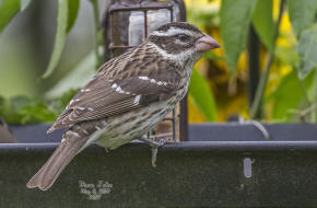 ![]() 2 Female Rose-breasted Grosbeak wants the feeder all to herself. |