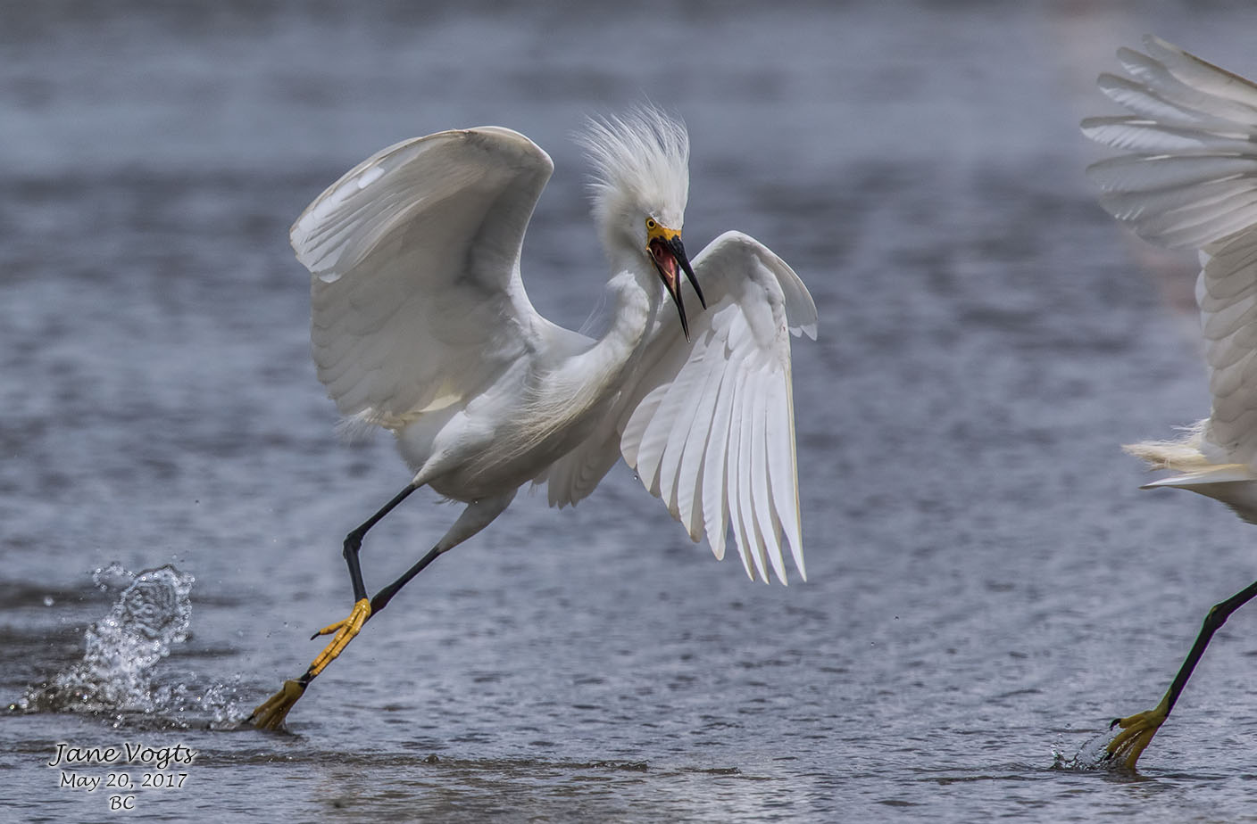 ![]() 41 Snowy Egret chasing a Little Blue Heron |