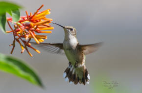 ![]() 20 Female Ruby-throated Hummingbird on firebush (Hamelia) |