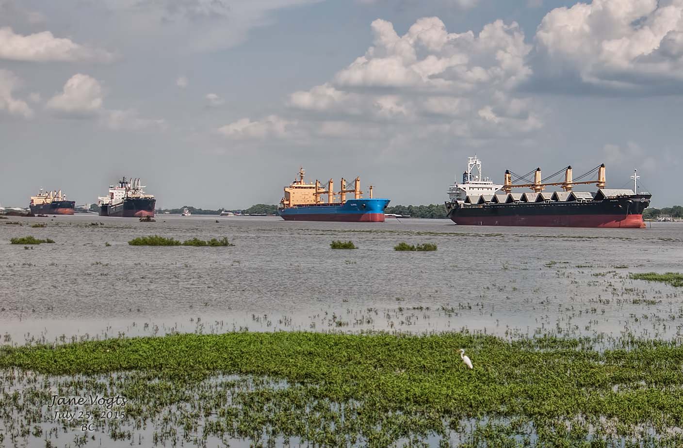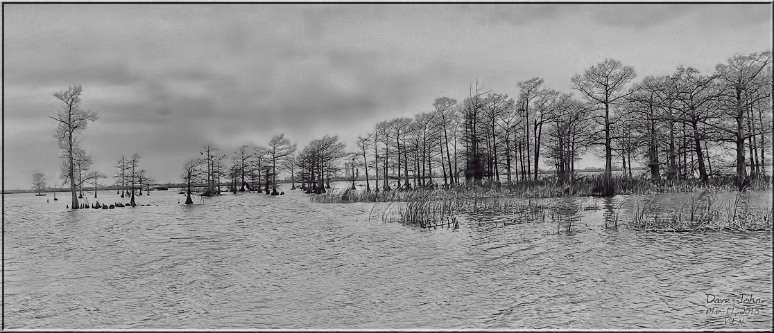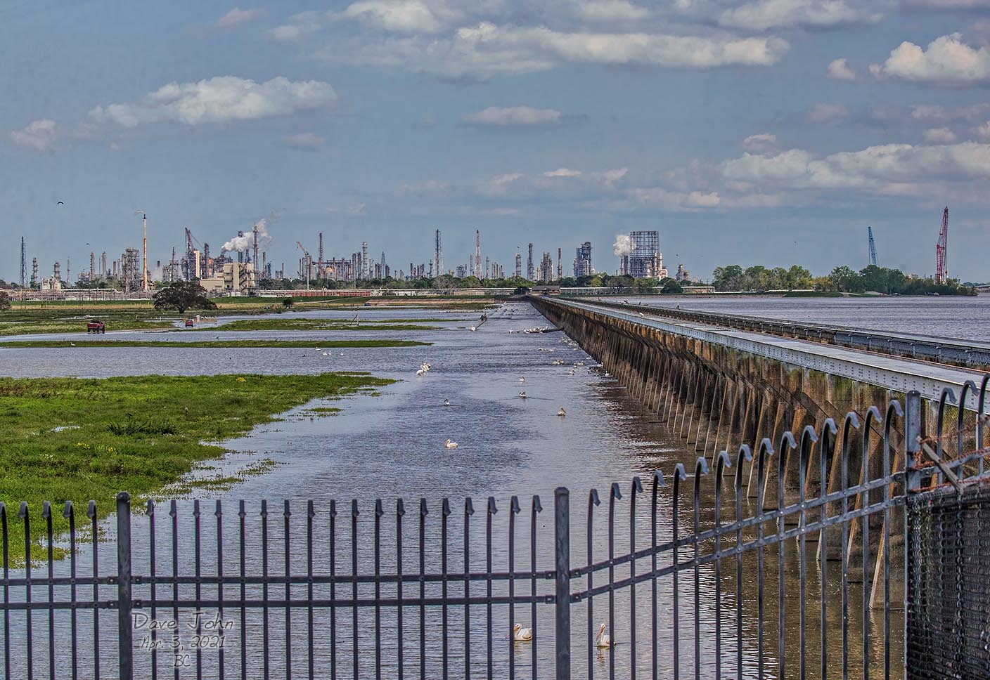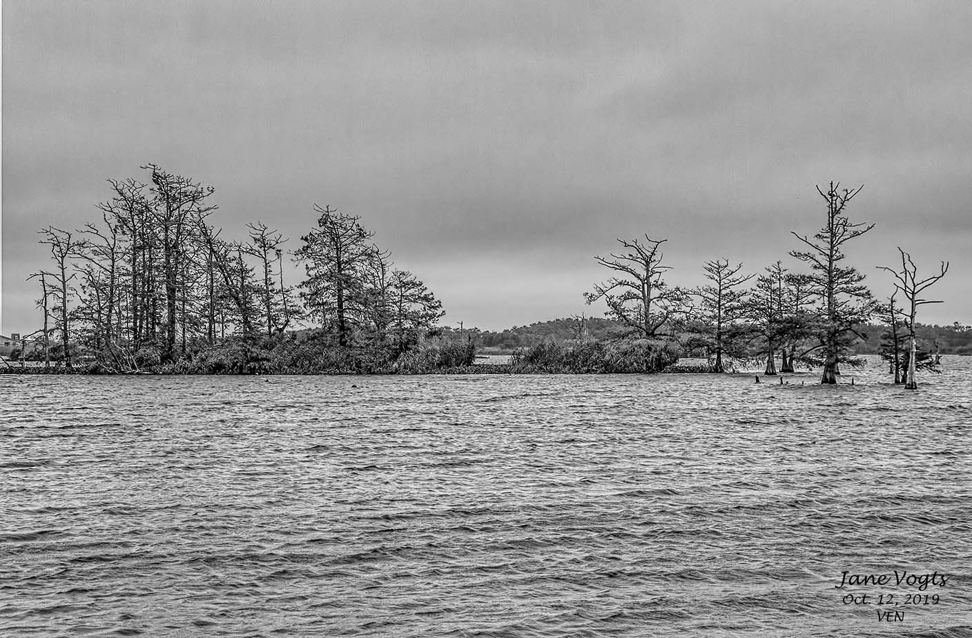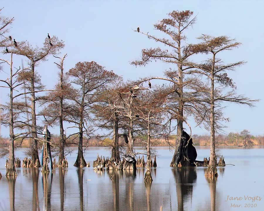 Bonnet Carre Spillway scenic with Great Egret and Mottled ducks |