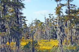 A sea of Nodding Bur Marigolds in a cypress swamp |