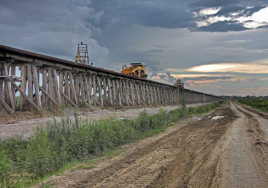 Workin' on the south railroad trestle in the Bonnet Carre Spillway |