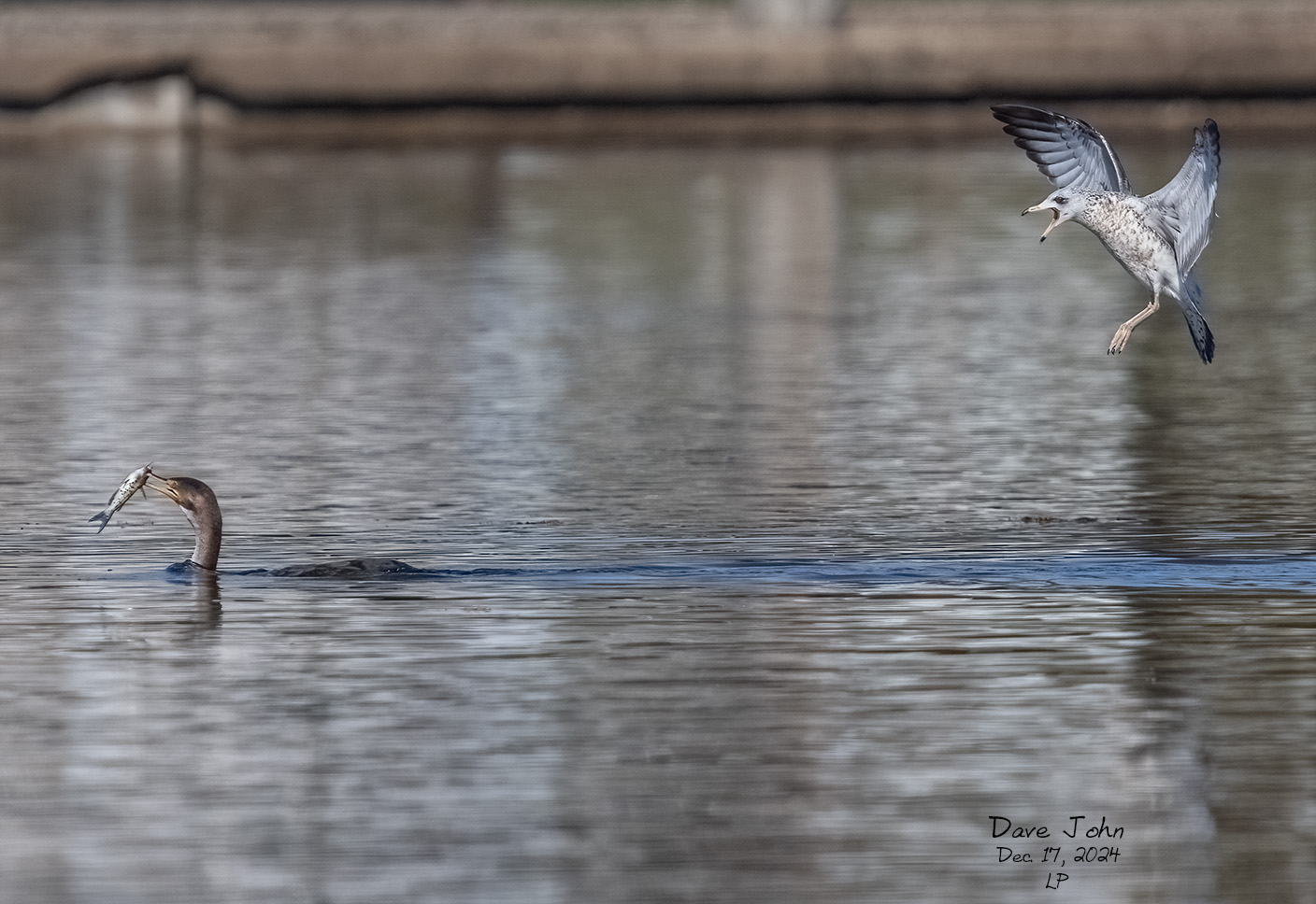 Gull looking to steal food from a Cormorant |