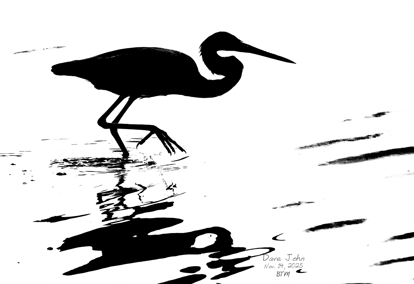 Great Blue Heron at dusk. |
