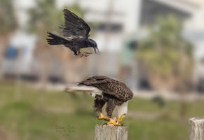Red-winged Blackbird harassing a Red-tailed Hawk |