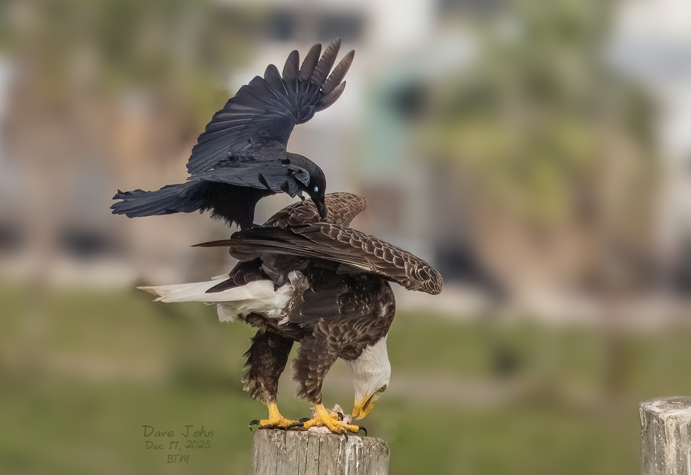 Red-winged Blackbird harassing a Red-tailed Hawk |