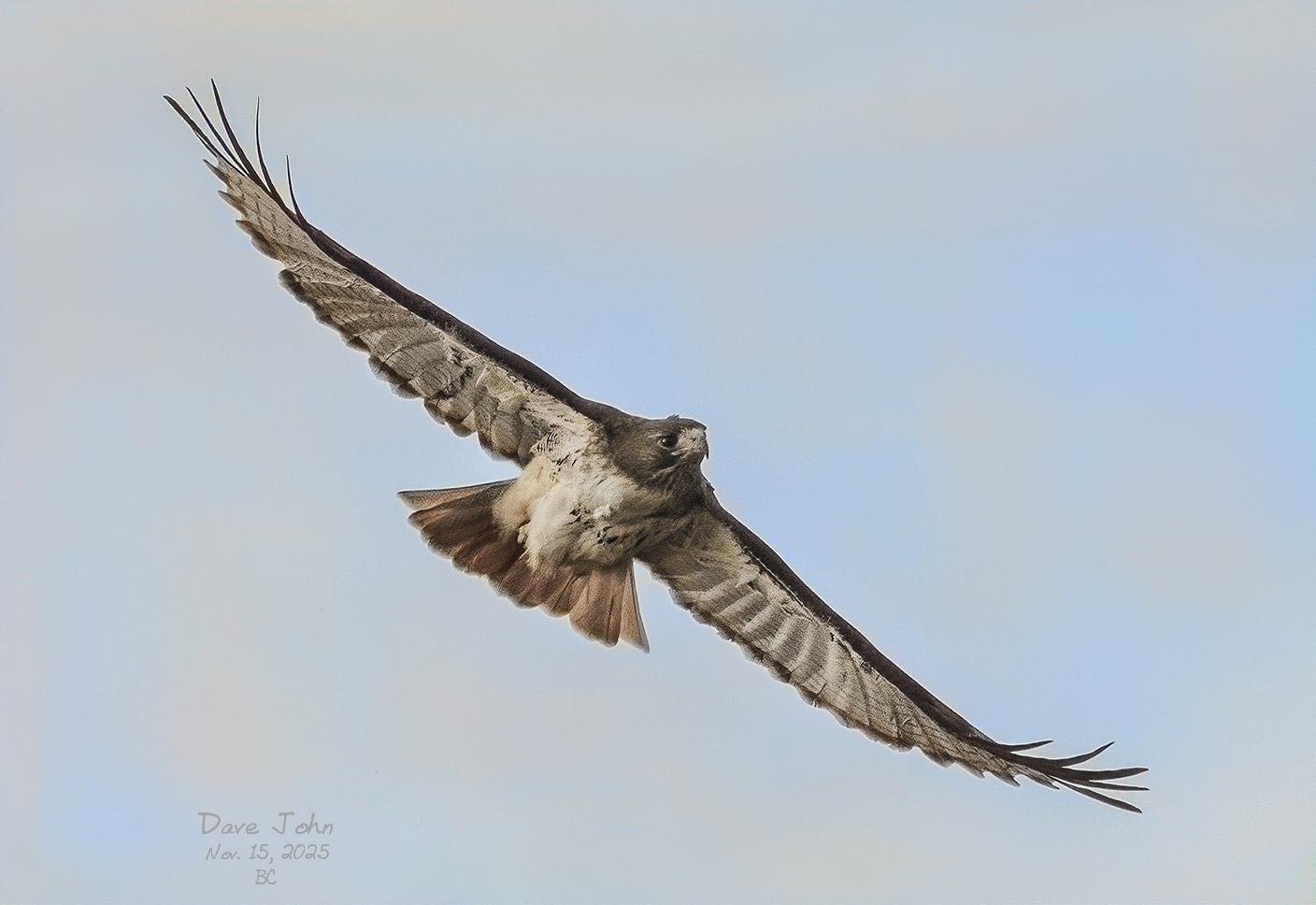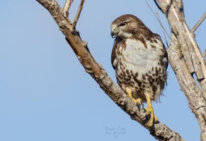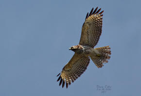 Red-winged Blackbird striking a Red-tailed Hawk |