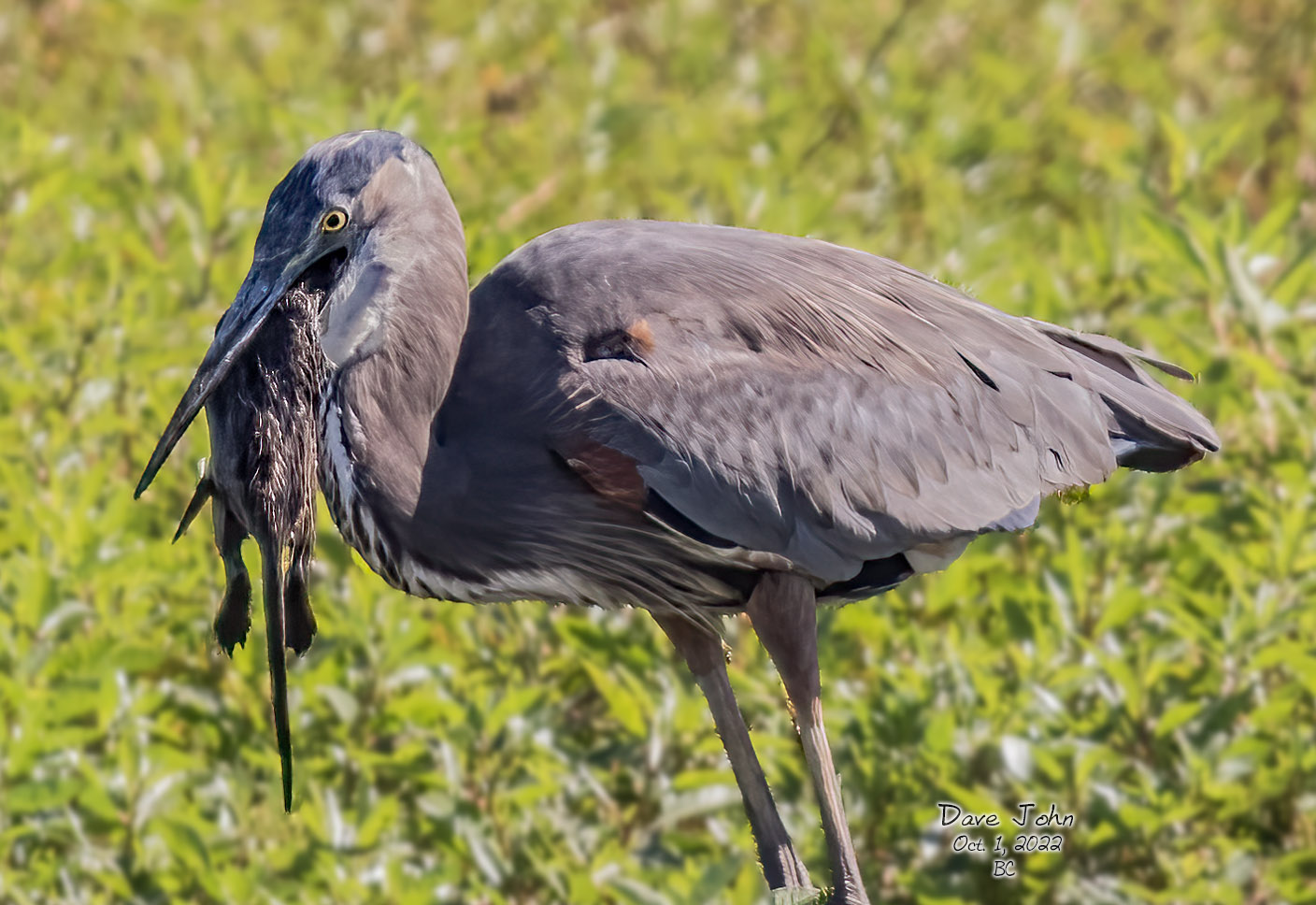 ![]() 1 Great Blue Heron with young nutria (~90 yds) |